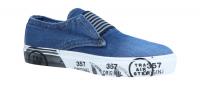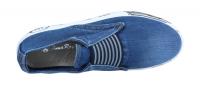 Cooler Sneaker von Anna Ros, der mit dem Obermaterial aus Jeans auffällt. Weiteres Highlight ist die bedruckte Sohle.