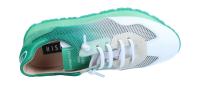 Der coole Sneaker von Hispanitas trifft in vielerlei Hinsicht den Modenerv: Die Spitze ist im angesagten Retro-Stil geschnitten. Das frische Grün macht nicht nur gute Laune, sondern ist auch eine Trendfarbe in diesem Jahr! Dazu das luftige Material an der Seite im Farbverlauf Grün-Weiß; ein wahrer Eyecatcher und perfekt für warme Tage. Für den Tragekomfort sorgt die Sohle mit "Tri flow - Gel System". Durch die Gummischnürung können Sie einfach hineinschlüpfen und loslaufen.