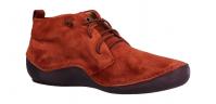 Der sportliche, knöchelhohe Halbschuh von Think ist aus der Reihe Kapsl. Er wurde aus sehr weichem, rostrot-braunem Velourleder hergestellt. Die Laufsohle ist sehr flexibel. Durch die Besonderheiten von Form, Machart und Sohle ist KAPSL zudem extra leicht und wunderbar weich und flexibel. Der Schuh bietet einen einfachen Einstieg durch die Gummisenkel. Das Innenfutter ist aus pflanzlich gegerbten Leder gefertigt. Die sehr bequeme Innensohle sorgt mit der Kork-Weichschaum-Bettung für eine besonders guter Auftritt-Dämpfung. Sie ist herausnehmbar, perfekt für eigene Einlagen.