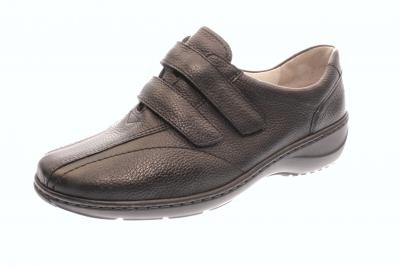 Der Kletthalbschuh von Waldläufer ist weit geschnitten (Weite K). Er hat einen angenehmen Keilabsatz. Der Fersenbereich ist schmal geschnitten. Im Vorderfußbereich ist der Schuh mit Textil gefüttert, damit er sich Ballen und Zehen besser anpasst. Die Laufsohle ist flexibel und leicht. Das Lederfußbett ist herausnehmbar.