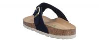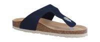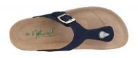 Bequemer Zehentrenner für Damen in Ocean/Dunkelblau mit anatomisch geformtem Tieffußbett aus Naturkork mit Weichbettung. Das Obermaterial besteht aus dickem, geöltem Nubukleder, das offenkantig verarbeitet wurde. Ebenfalls aus echtem Leder besteht die atmungsaktive Decksohle. Eine verstellbare Schnalle gewährleistet eine variable Passform. Die Laufsohle ist aus leichtem EVA-Material.