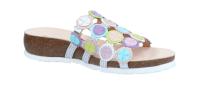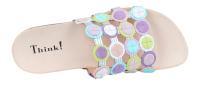 Die Pantolette Julia von Think beweist, dass schicke Schuhe auch komfortabel sein können. Herzstück der Pantolette ist das bequeme, anatomisch geformte Kork-Tieffußbett mit eingearbeiteter Dämpfung und Lederbezug. Die Pantolette Julia ist in normaler Weite mit breiterem Zehenbereich geschnitten, sodass die Zehen viel Platz haben. Die Laufsohle ist leicht, flexibel und rutschhemmend. An der Innenseite ist ein kleiner Gummizug für eine gute Anpassung eingearbeitet. Die bunten Punkte verschönern die Pantolette und lassen sie sehr gut zu verschiedenen Farben kombinieren. Innen ist sie mit vegetabil gegerbtem Leder gefüttert, sodass barfuß Tragen an heißen Tagen sehr gut möglich ist.
