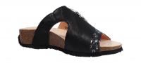 Verspielte, trotzdem schlichte Pantolette von Think mit einem bequemen, anatomisch geformten Tief-Fußbett aus einem Kork-Latexgemisch und bietet viel Platz für die Zehen. Durch den Klettriemen kann die Weite am Spann angepasst werden. Toll ist zudem das Effektleder an der Seite.