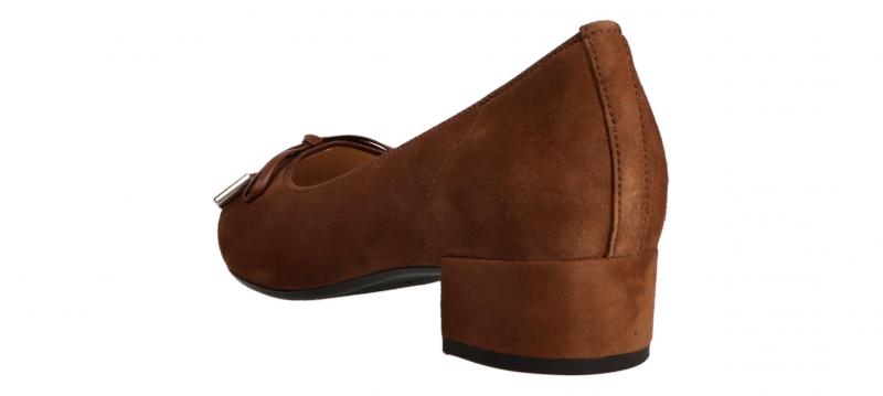 Eleganter Pumps von Gabor in einem schönen Cognac-Ton. Die gepolsterte Decksohle sorgt für mehr Tragekomfort. Der kleine V-Ausschnitt sorgt für mehr Anpassung an den Spann. Eine Schleife verziert den Pumps. Der bequeme Blockabsatz ist modisch und zugleich angenehm zu tragen.