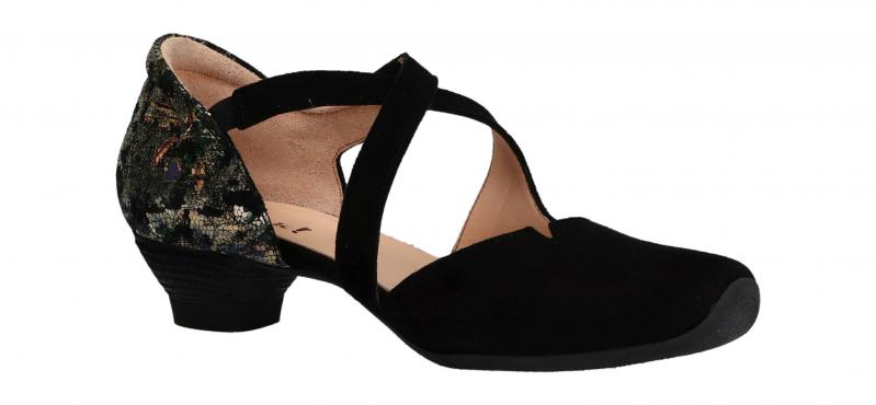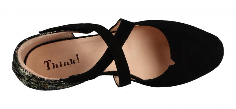 Ein eleganter, an den Seiten ausgeschnittener Pumps von Think! Er wurde aus pflanzlich gegerbten Leder hergestellt. Die Fersenkappe bietet guten Halt im Schuh. Zusätzlich ist der Rand der Fersekappe an der Achillissehne gepolstert, was für ein bequemes Tragegefühl sorgt und als Anti-slip wirkt, also das Herausschlappen verhindert.