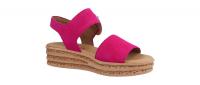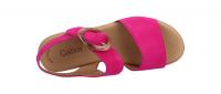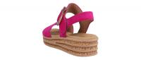 Eine modische Sandale von Gabor aus weichem Nubukleder in einem sehr schönen Pinkton. Ein besonderes Highlight ist die Keilplateausohle in korkähnlicher Optik. Für angenehmen Tragekomfort sorgt die gepolsterte Decksohle. Mit dem Klettriemen kann die Sandale schnell angezogen und die Weite am Knöchel gut angepasst werden.