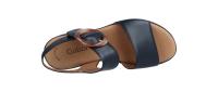 Eine modische Sandale von Gabor aus weichem Glattleder. Ein besonderes Highlight ist die Keilplateausohle in korkähnlicher Optik mit schwarzen Streifen. Für angenehmen Tragekomfort sorgt die gepolsterte Decksohle. Mit dem Klettriemen kann die Sandale schnell angezogen werden und die Weite am Knöchel gut angepasst werden.