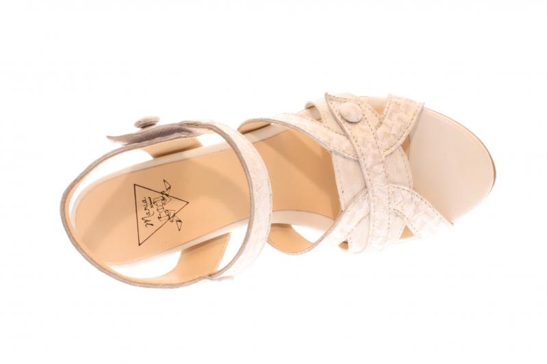 Schicke Sandale von Maria Shoe mit weich gepolsterter Lederdecksohle. Der kleine Absatz sorgt für ein angenehmes Tragegefühl. Durch den Klettverschluss lässt sich die Sandalette optimal am Fuß anpassen.