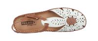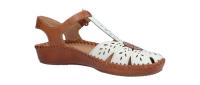 Eine bequeme Sandale von Pikolinos. Sie ist vorne geschlossen, aber sehr durchbrochen, sodass Luft an den Fuß kommt. Auffällig ist die charakteristische Sohlennaht. Der Steg bietet guten Halt im Schuh. Der Keilabsatz hat eine angenehme Höhe. Der Klettriemen ermöglicht ein schnelles Anziehen und gute Anpassung an den Fuß. Leather working Group