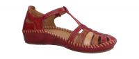 Die Sandale von Pikolinos bedeckt mit Riemen die Zehen. Hinten sorgt eine Fersenkappe für einen guten Sitz und zusammen mit dem Klettriemen für festen Halt. Die Keilsohle ist angenehm zu tragen. Die komplette Lederausstattung macht den Schuh perfekt zum Barfußtragen.