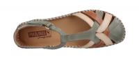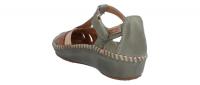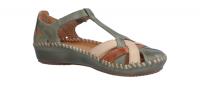 Die Sandale von Pikolinos bedeckt mit geflochtenen Riemen die Zehen. Hinten sorgt eine Fersenkappe für einen guten Sitz und zusammen mit dem Klettriemen für festen Halt. Der Keilsohle ist angenehm zu tragen. Die komplette Lederausstattung macht den Schuh perfekt zum Barfußtragen. Toll ist die charakteristische Randnaht, die ein ganz besonderes Flair versprüht. Mit dem Klettverschluss ist der Riemen schnell verschlossen.