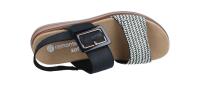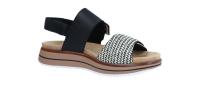 Die modische Sandale von Remonte besticht mit ihrer leichten Plateau-Laufsohle. Schön ist die Sohlenumrandung in Bastoptik. Der kleine Keilabsatz ist bequem zu tragen. Die sehr bequeme Fußbettsohle ist herausnehmbar, sodass auch eigene orthopädische Einlagen verwendet werden können. Die Riemen aus Glattleder sind mit Textil gefüttert, so schmiegen sie sich bequem an den Fuß. Mit dem Klettverschluss kann die Weite an den Spann individuell angepasst werden.