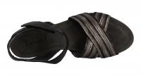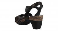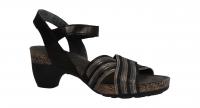 Die schöne Traudi Sandale von Think kombiniert Schwarz mit verschiedenen Metallic-Farbtönen. Die Laufsohle ist aus einem leichten Material. Bequem macht sie das Plateau (25 mm) und die weiche Decksohle. Mit dem Klettriemen kann man die Weite im Fesselbereich anpassen. Das verwendete Leder ist pflanzlich gegerbt.