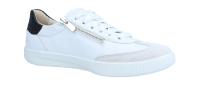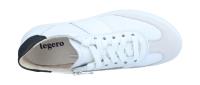 Der Sneaker SILENCE von Legero kommt im modischen Retro-Look. Die charakeristisch mittig hochgezogene Vorderkappe ist aus hellgrauem Veloursleder, der Rest aus weißem Glattleder. Die Sohle ist dezent und schlank gehalten.