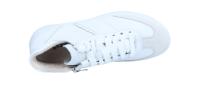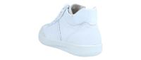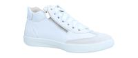 Der knöchelhohe Sneaker SILENCE von Legero kommt im modischen Retro-Look. Die charakeristisch mittig hochgezogene Vorderkappe ist aus hellgrauem Veloursleder, der Rest aus weißem Glattleder. Die Sohle ist dezent und schlank gehalten.