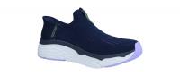 Der Skechers Hands Free Slip-ins: Max Cushioning Elite - Smooth Transition überzeugt mit der NRT - Natural Rocker Technology für sanftes Abrollen von der Ferse zu den Zehen. Neue Technologie ist bei "Slip-in" das einzigartige Comfort Pillow, also eine speziell gepolsterte Ferse, wodurch ein einfaches Reinschlüpfen ohne Hilfsmittel möglich ist. Für Tragekomfort auch bei langem Stehen und Gehen sorgen die leichte, reaktionsfähige ULTRA GO®-Plateausohle und die atmungsaktive Skechers Air-Cooled Goga Mat-Innensohle mit starker Rückfederung. Die Komfort-Innensohle aus Ortholite®-Schaumstoff sorgt fürlanglebige Dämpfung und hervorragende Atmungsaktivität, mit 5 % recyceltem Gummi.