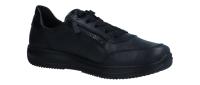 Bei diesem sportlichen Sneaker von Ara besteht das Obermaterial aus weichem Glattleder. Die komplett schwarze optik macht ihn super neutral und perfekt zu kombinieren. Das Frottee-Innenfutter auf Bambusbasis, ist sehr hautfreundlich, angenehm atmungsaktiv und sorgt für ein natürliches Fußklima. Der Sneaker hat ein weiches, anpassungsfähiges Wechselfußbett, welches dank gepolsterter Zonen für hohen Tragekomfort sorgt. Gleichzeitig ist die Innensohle herausnehmbar und ermöglicht das Tragen von eigenen (orthodädischen) Einlagen. Die bequeme H-Weite lässt dem Fuß, insbesondere den Zehen, mehr Platz. Mit der Schnürung kann der Schuh perfekt dem Fuß angepasst werden. Dank des Reißverschlusses ist der Schuh schnell und bequem angezogen.