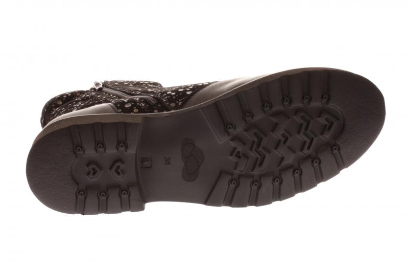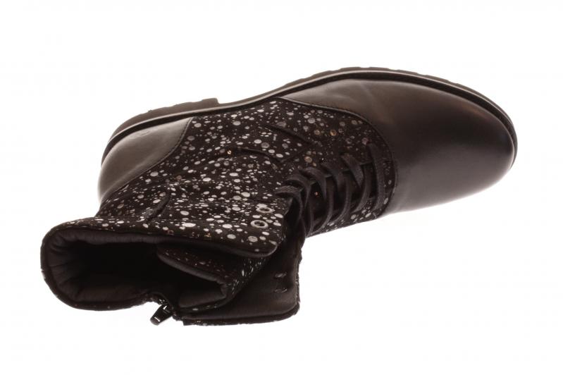 Modischer kurzer Stiefel von Cloud mit Lederfutter. Das Fußbett ist wechselbar. Optimale Weitenregulierung durch Schnürsenkel, ein leichter Einstieg ist durch seitlichen Reißverschluss gegeben. Der Schaft ist mit schimmernden Tröpfchen versehen. Die Laufsohle ist robust und gibt einen festen Stand.