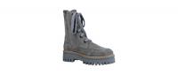 Der modische Bootie von Gianluca Pisati aus Italien vereint mehrere Trendthemen. So fällt natürlich die dicke, profilierte Sohle auf. Die leichte Karrée-Spitze lässt den Zehen angenehm Platz. Das weiche Nubukleder schmiegt sich dem Bein an. Mit der Schnürung kann die Weite perfekt an Spann und Bein angepasst werden. Der zusätzliche Reißverschluss an der Innenseite ermöglicht einen schnellen und bequemen Einstieg.