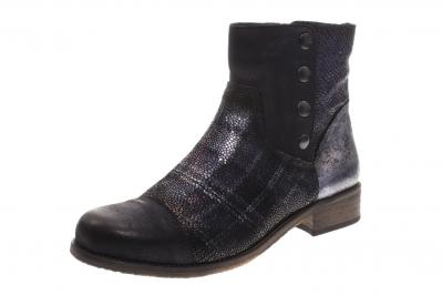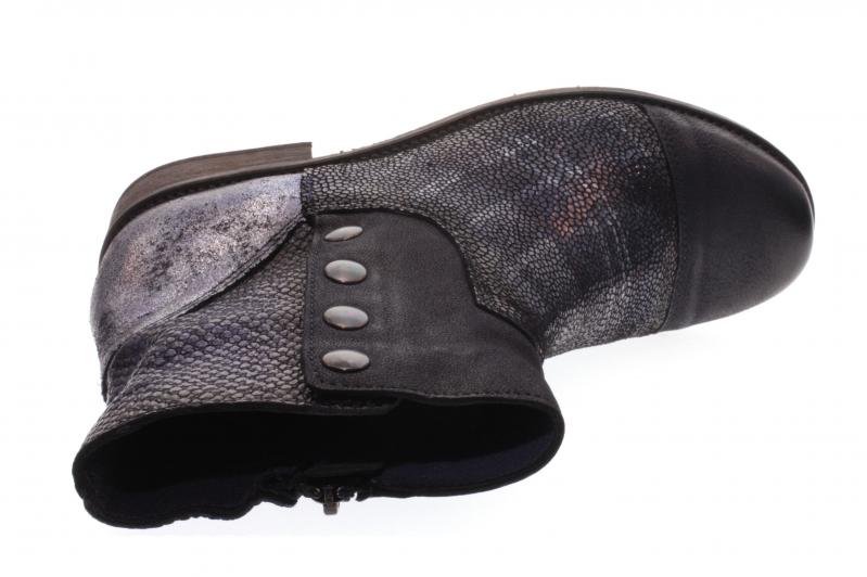 Modischer kurzer Stiefel von Pinto di Blu mit Silberapplikationen im Oberleder. Die Schaftaußenseite ist mit einer Knopfleiste verziert, die zur Weitenregulierung genutzt werden kann. Der Stiefel ist mit Wechselfußbett ausgestattet. Die rutschfeste und flexible Laufsohle macht ihn zum tollen Herbstschuh.