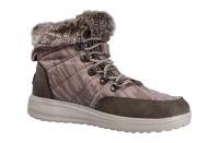 Ein modischer Bootie von Hey Dude mit extra leichter Sohle. Innen ist die Stiefelette leicht gefüttert. Die Fußbettsohle ist herausnehmbar. Er ist bequem anzuziehen dank der Gummisenkel. Die Sohle ist gummiert, für bessere Rutschhemmung im Herbst.