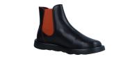Modischer Chelsea Boot von Fly London mit orangenen Gummieinsätzen. Dank seiner breiten Form lässt er den Zehen gut Platz.
