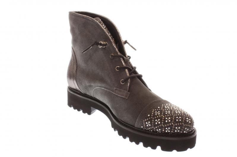 Eine modische Stiefelette von Gabor, die mit einer modernen dickeren, aber sehr leichten Sohle ausgestattet ist. Zusammen mit der bequemen Innensohle, läuft sich der Schuh sehr angenehm. Die mit Steinchen besetzte Spitze und Zunge bringt etwas Glamour in das modische Design. Der Gummizug sorgt für sehr gute Anpassung ans Bein.