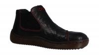 Ein Chelseaboot von Rieker mit roten Kontrastnähten und leichtem Innenfutter. Durch die Gummizüge kann die Stiefelette schnell angezogen werden.
