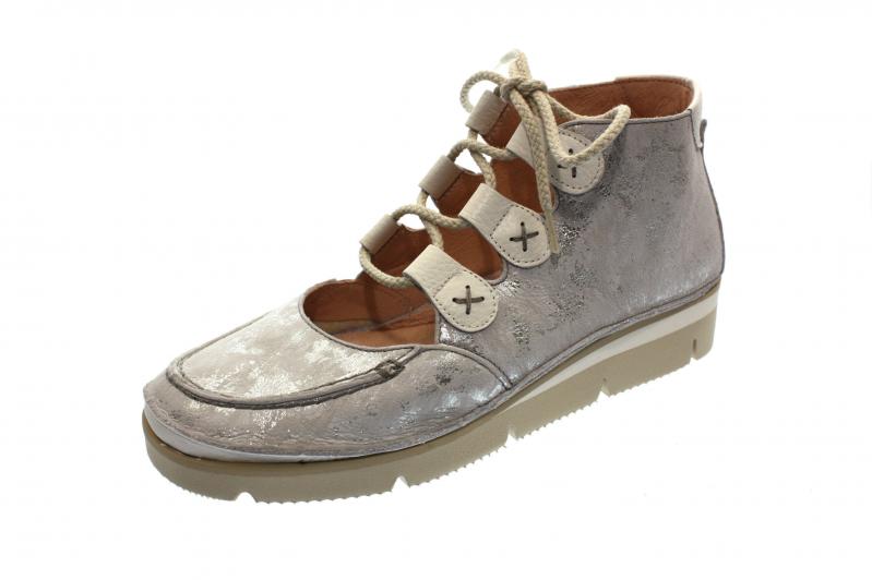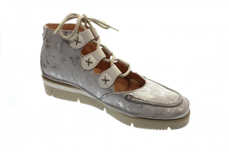 Diese sommerliche Stiefelette von Softwaves erstrahlt in einem mosaikähnlichem Obermaterial in silber. Die ausgefallene Laufsohle kommt in einem maritimen Look daher. Darüber hinaus können Sie die Innensohle wechseln und mit der Schnürung die Weite nach Bedarf anpassen. Weiterer Pluspunkt: Der Schuh ist federleicht.