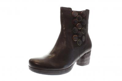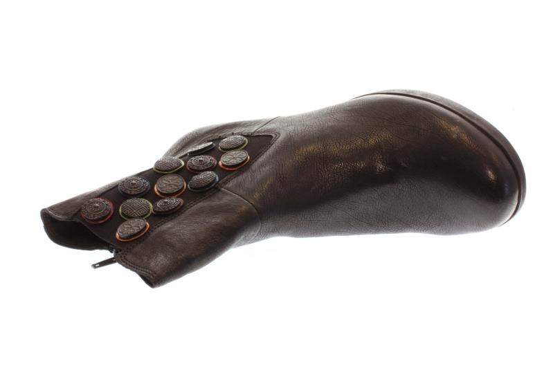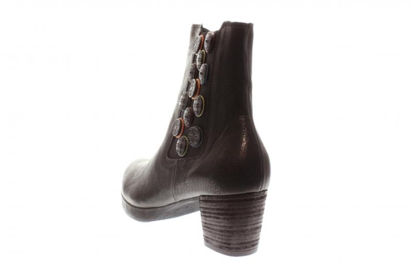 Eine modische Stiefelette von Think aus weichem Glattleder. Die bequeme Fußbettsohle kann gegen eigene Einlagen getauscht werden. Die farbigen Knöpfe an der Außenseite machen diese Stiefelette zu einem echten Hingucker.