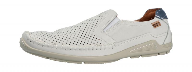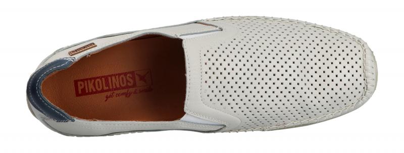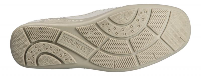 Ein durchbrochener, bequemer Slipper von Pikolinos mit flexibler Laufsohle. Er ist im Pikolinos Stil mit Mokassinnaht gefertigt. Das Fußbett ist wechselbar und das Oberleder ist sehr weich. Zwei Gummizüge sorgen für Anpassung an den Fuß.