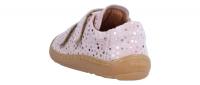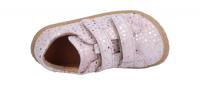 Der Barfußschuh der Marke Froddo ist aus robustem, und trotzdem weichem Leder gefertigt, das mit dezent glänzenden Punkten verziert ist. Die flache Sohle, ohne Sprengung (Absatz) unterstützt den natürlichen Gang. Durch die dünne und weiche Gummi-Sohle ist flexibel und lässt Kinder Untergründe spüren. Weiterhin ist die Zehenbox breit, der natürlichen Form des Fußes nachempfunden. Die Innensohle ist herausnehmbar - so kann die Größe kontrolliert, gelüftet oder eine eigene Einlage verwendet werden. Mit den beiden Klettriemen lässt sich die Weite individuell an Spann und Voderfuß anpassen.