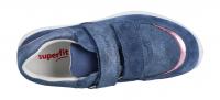 Schicker Mädchensneaker von Superfit mit einer flexiblen Laufsohle. Durch silberglitzernes Effektleder auf dem Deckblatt und im Fersenbereich, sowie an einem der zwei Klettverschlüssen, lässt der Sneaker Mädchenherzen höher schlagen. Mit den beiden Klettverschlüssen lässt sich der Schuh schnell und einfach anziehen und optimal an den Fuß angepassen. Durch die innen verlängerte Fersenkappe und die rutschfeste und gleichzeitig biegsame Laufsohle wird der sichere Stand noch mehr unterstützt. Der Schuh ist angenehm breit (WMS M IV) und bietet viel Zehenfreiheit.
