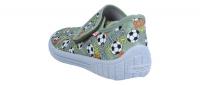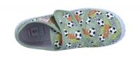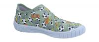 Ein klassicher Hausschuh von Superfit mit aufgedruckten Fußbällen-Motiv. Mit dem Klettverschluss kann die Weite praktisch stufenlos eingestellt werden und die Schuhe schnell an- und ausgezogen werden. Die wellenartig verlaufende Sohle ist abriebsfest ("non marking"). Die kleinen Luftlöcher in der Sohle sorgen für mehr Belüftung. Die hochgezogene Sohle an den Zehen und Fersen schützt das Textilmaterial vor Abrieb.