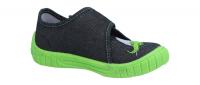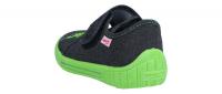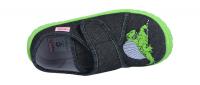 Ein leichter Hausschuh von Superfit mit coolem Dinosaurier-Patch. Durch den Klettverschluss lässt sich der Schuh schnell alleine anziehen und die Weite gut anpassen. Die Sohle ist abriebslos ("non marking"). Die kleinen Luftlöcher in der Sohle sorgen für mehr Belüftung. Die hochgezogene Sohle an der Ferse schützt das Textilmaterial vor Abrieb.