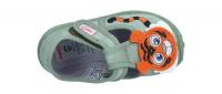 Süßer Hausschuh von Superfit mit Tigerapplikation. Mit dem Klettverschluss kann die Weite praktisch stufenlos eingestellt werden und die Schuhe schnell an- und ausgezogen werden. Die flexible Sohle ist abriebslos ("non marking"). Die kleinen Luftlöcher in der Sohle sorgen für mehr Belüftung. Die hochgezogene Sohle an Ferse und Zehen schützt das Textilmaterial vor Abrieb.