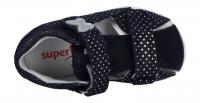 Leichte und flexible Sandale von Superfit für Mädchen mit silbernen Pünktchen und Schmetterling auf dem Oberlder. Die Sandale ist mit einer weich gepolsterten Innensohle ausgestattet, die den Fuß abfedert und polstert. Die Fersenkappe ist ebenso weich gepolstert. Der Vorderfußraum ist etwas breiter, damit die sensiblen Kinderfüße nicht eingeengt werden. Damit aber dennoch genügend Halt geboten wird, ist der Schuh vorne geschlossen und mit zwei Klettverschlüssen versehen, die sich in der Weite stufenlos anpassen lassen. Das weiche Lederfutter ist ideal, auch zum Barfuß tragen.