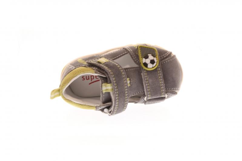 Superfit Sandale für kleine Jungs. Die hochgezogene Fersenkappe gibt den kleinen Füßen mehr Halt. Beide Riemen mit Klett verstellbar.