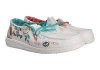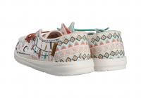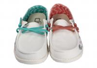 Die Hey Dude Slipper sind extrem leicht. Als Sohle wurde super leichtes EVA verwendet. Der Stoff ist weich und passt sich dem Fuß an. Die herausnehmbare Einlegesohle ist weich und mit Leder bezogen. So merkt man den Schuh kaum am Fuß. Die farbigen Gummi-Senkel machen das An- und Ausziehen kinderleicht. Das tolle bei diesem Modell sind der coole Print und die verschieden farbigen Senkel und Futter.