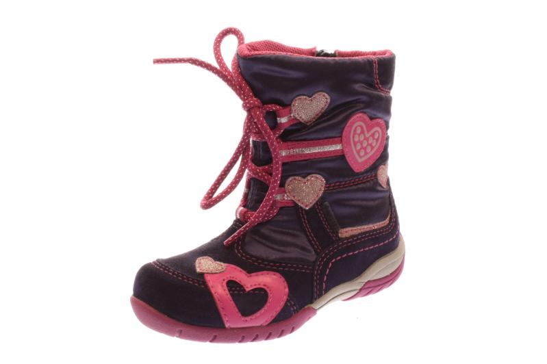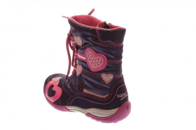 Ein süßer Mädchenstiefel von Superfit. Er ist mit Herzchen und Dekoschnürung verziert. Der Reißverschluss sorgt für einfaches und schnelles Anziehen.. Die GORE-Tex Membran macht den Schuh wasserdicht und atmungsaktiv und sorgt so für warme und trockene Füße!